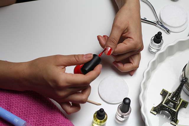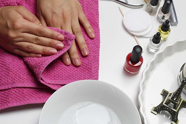 Никогда не замачивайте руки в жидкости для снятия лака — это сушит ногти. Снимайте лак движениями от внешнего края вниз по направлению к центру ногтя.